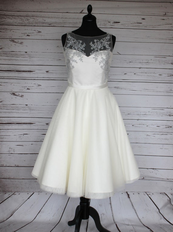 Ivory Illusion Tulle With Smoke Grey Blue Applique Tea Length Etsy