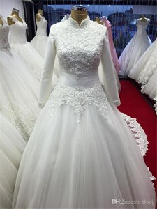 Sleeve Muslim White Colour Mermaid Bridal Gown Wedding Dress