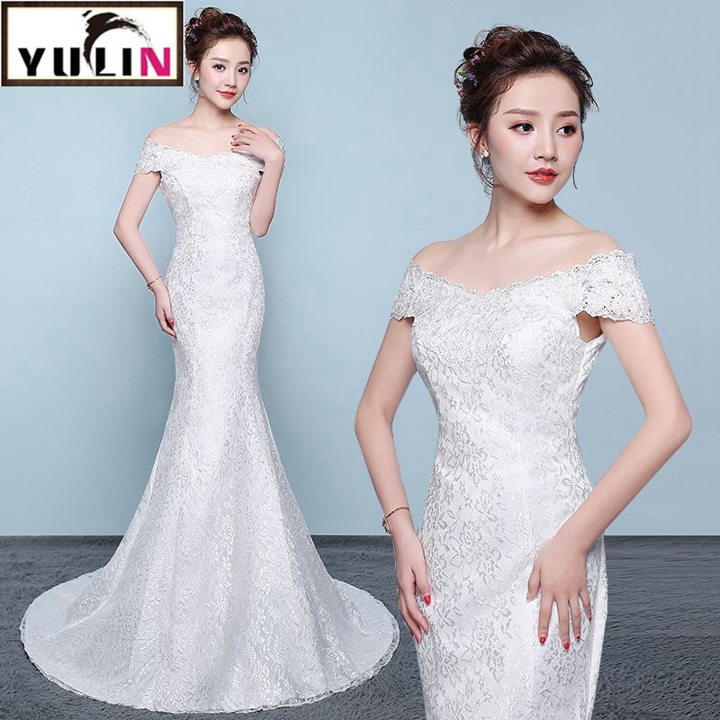 Elegant Long Dress Mermaid White Lace Bride Wedding Dress Shopee