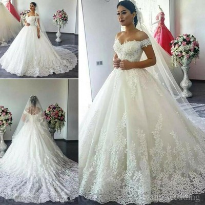 Lace Appliques Ball Gown Wedding Dresses Off Shoulder Long