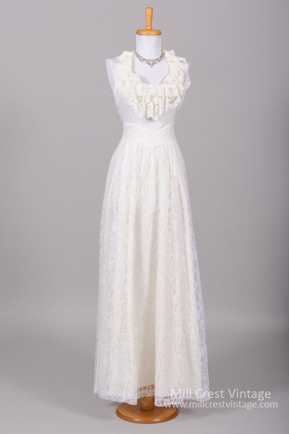 1970 Halter Style Lace Vintage Wedding Gown Etsy