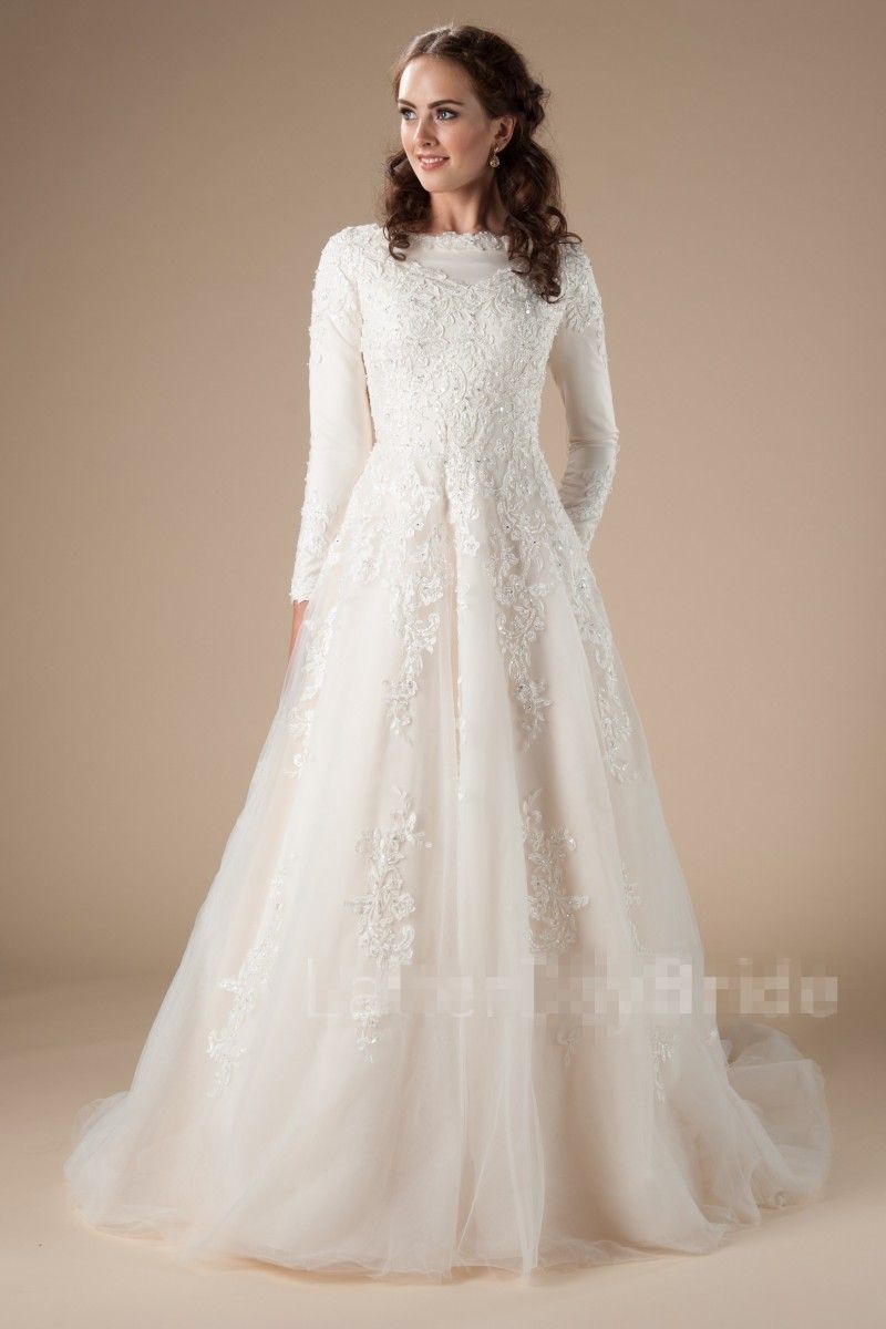Discount A Line Crepe Tulle Modest Wedding Dresses With Long
