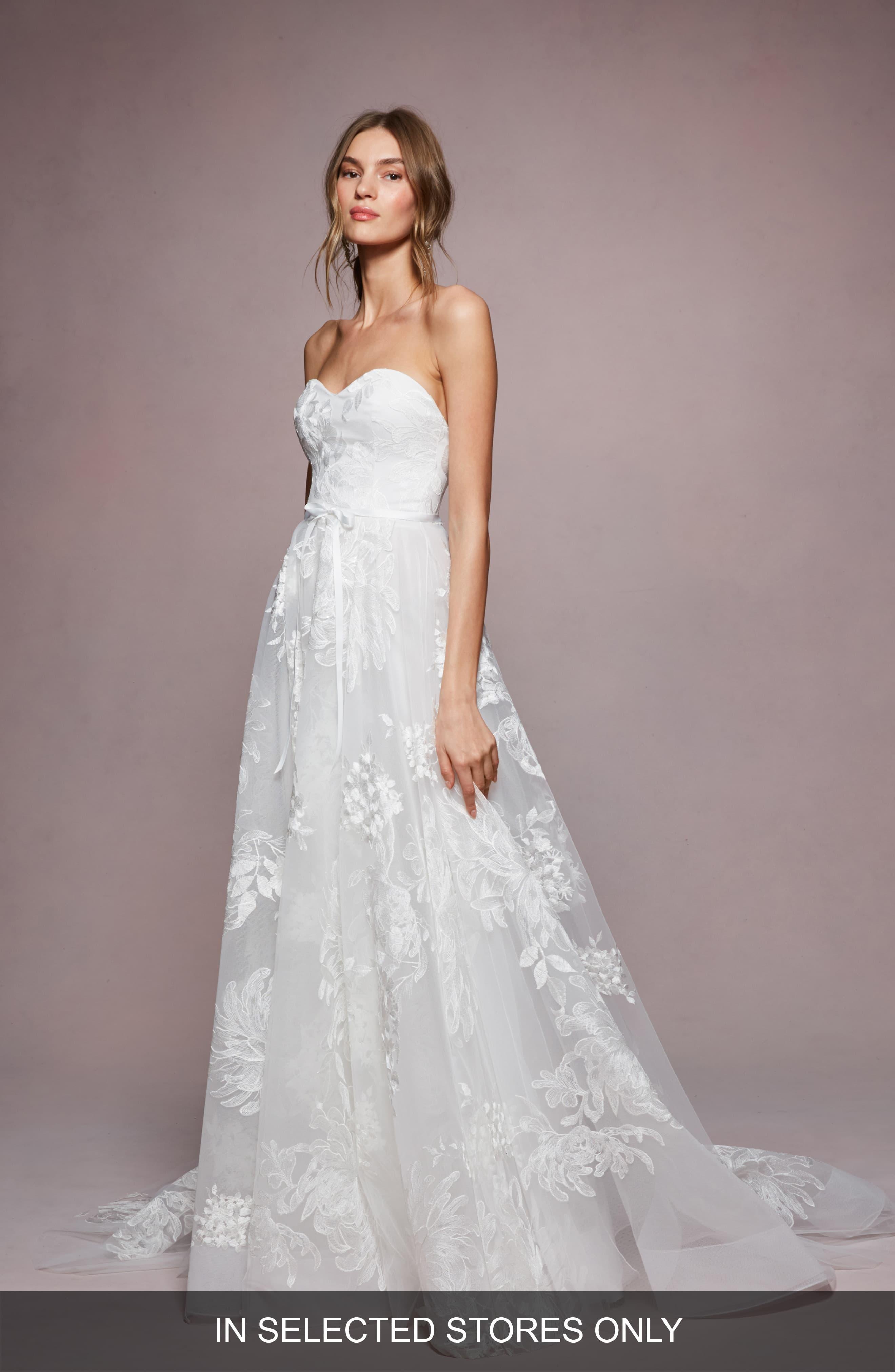 Marchesa Notte Mae Embroidered Strapless A Line Wedding Dress In