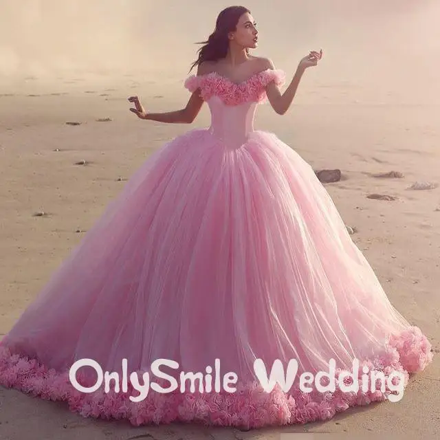 Puffy Ball Gown Wedding Dresses Princess Pink Robe De Mariee Off