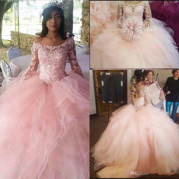 Newest Princess Pink Ball Gown Quinceanera Dresses Bateau Long