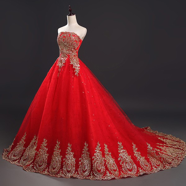 Red Ball Gown Wedding Dresses Vestido De Noiva 2017 Kustom Made