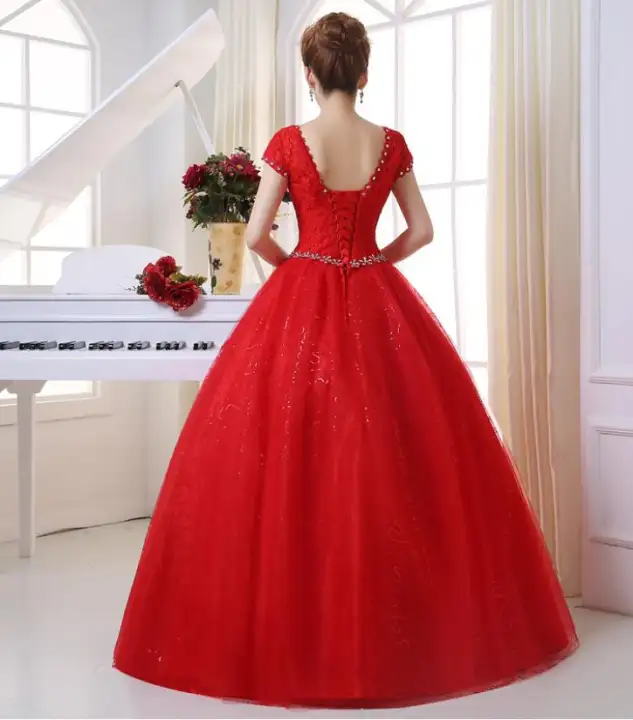 Lace Red Wedding Dresses Women Fashion Elegant Ball Gown Shopee