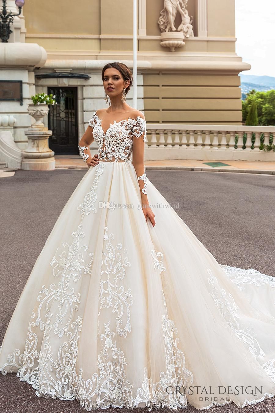 New Lace Wedding Dresses Cathedral Royal Train Straps Bridal