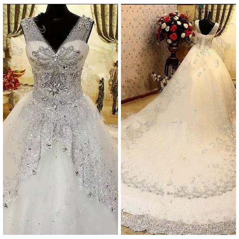Real Photo White Tulle Luxury Ball Gown Wedding Dresses Bling