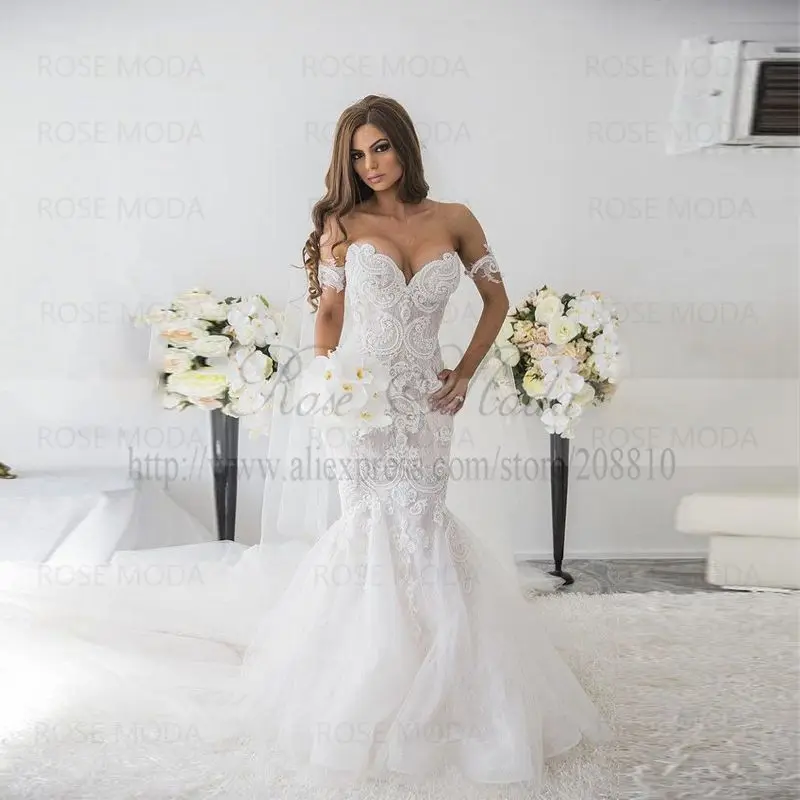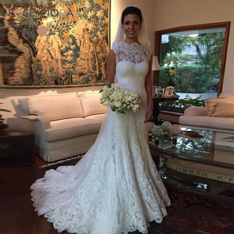 Rose Moda Luxury Lace Mermaid Wedding Dress 2019 Pearl Beaded