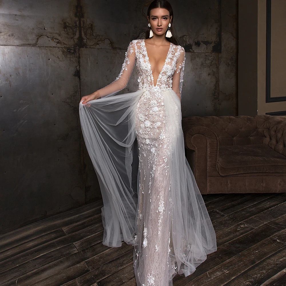 2020 New Design Wedding Dresses Mermaid Detachable Skirt Long