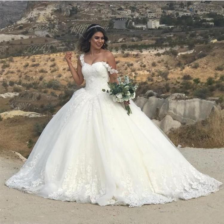 2019 Elegant Ball Gown Wedding Dresses Lace Appliques White Tulle