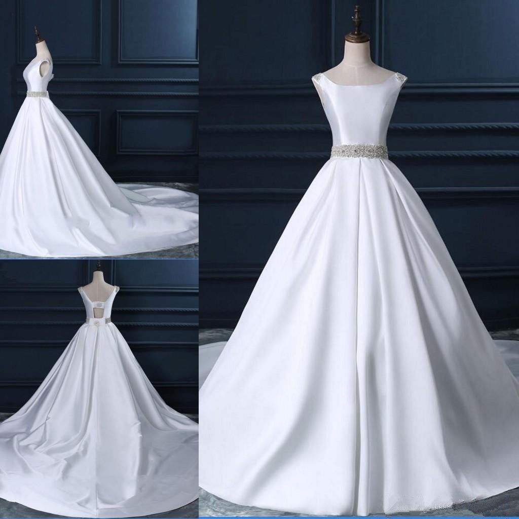 Discount Satin A Line Wedding Dresses Crystals Beaded Sash Bridal