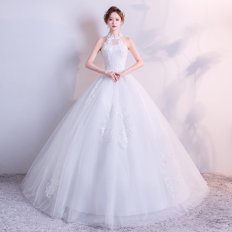Halter Neck Wedding Gown 2019 New Korean One Word Shoulder Stand