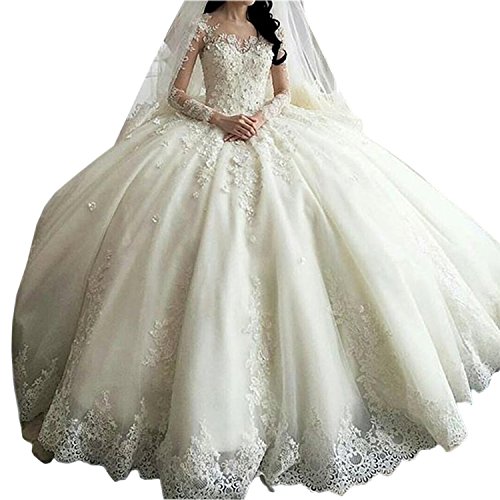 Luxury Ball Gown Long Sleeve Lace Applique Crystals Wedding