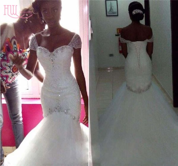 Luxury Mermaid Wedding Dresses With Crystals Beaded Ruched Tulle