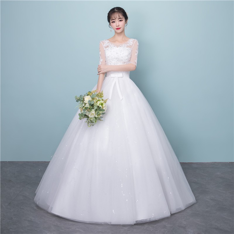 Beaunique Tulle Round Neck Half Sleeve Modern Lace Tulle Wedding