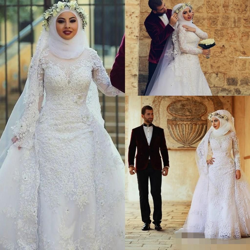 Long Sleeves Lace Muslim Mermaid Wedding Dresses Arabic Islamic
