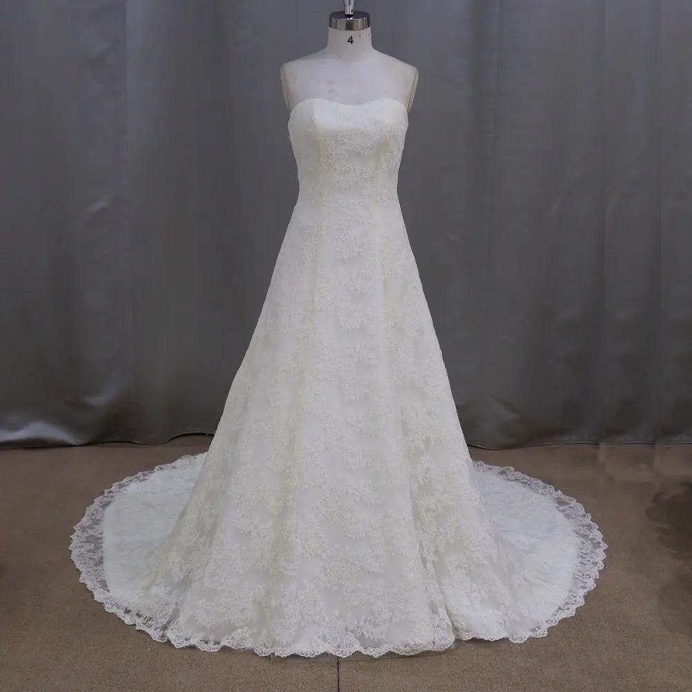Qq Lover Silver Edge Lace Small Train Wedding Dress Top Appliques
