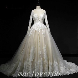 Long Sleeve Applique Princess Luxury Ball Gown Wedding Dress