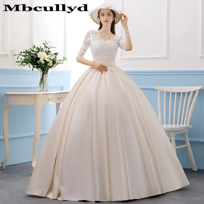 Mbcully Amazing New Puffy Wedding Dresses 2019 Sheer Long Sleeves