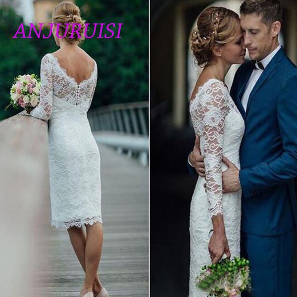 Anjuruisi 2019 Scoop Short Wedding Dress Knee Length Simple Sheath