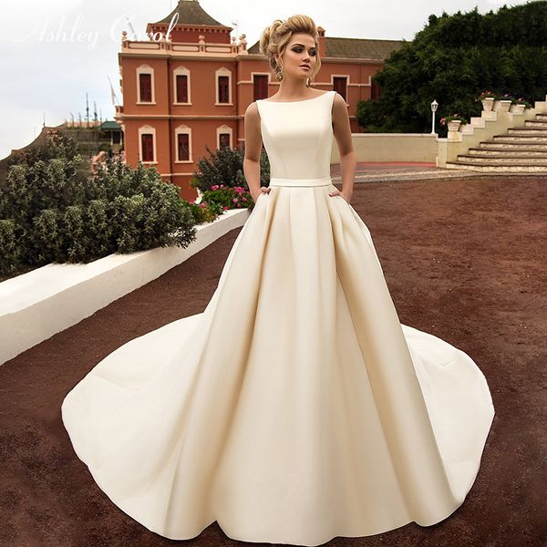 Ashley Carol Sexy Backless Bow Soft Satin Princess Wedding Dress