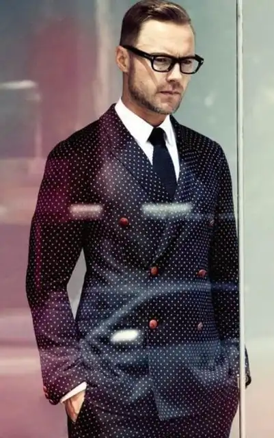 Fashion Double Breasted Men S Custom Navy Blue Dot Classic Suit