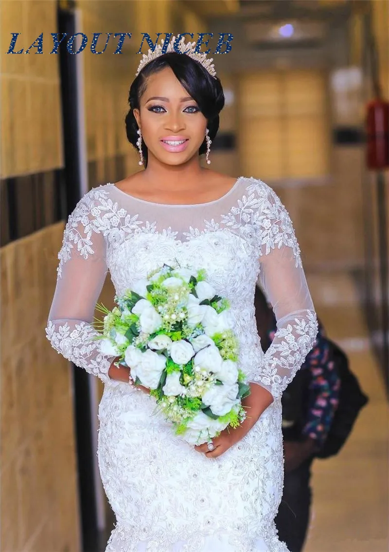 2019 African Nigeria Mermaid Wedding Dress Plus Size Jewel Neck