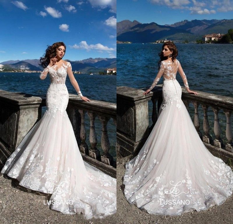 2018 Gorgeous Mermaid Wedding Dresses Sheer Neck Illusion Long