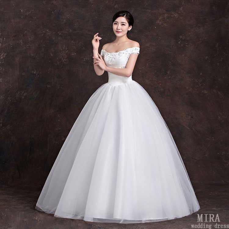 Korean Style Off Shoulder Sexy Bridal Ball Gown Wedding Dress