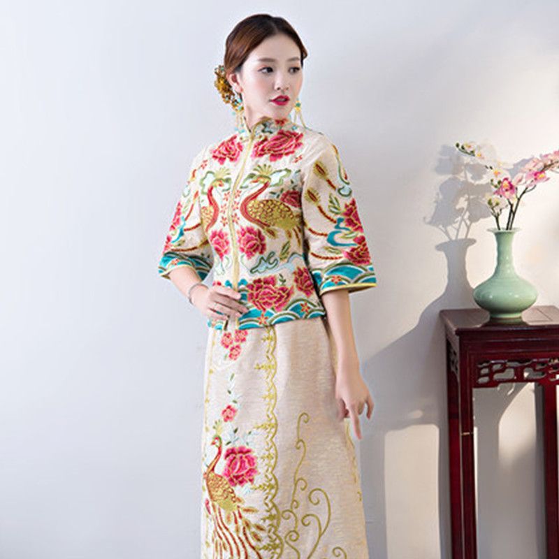 Mandarin Chinese Wedding Dress Phoenix Pattern Tailor Made