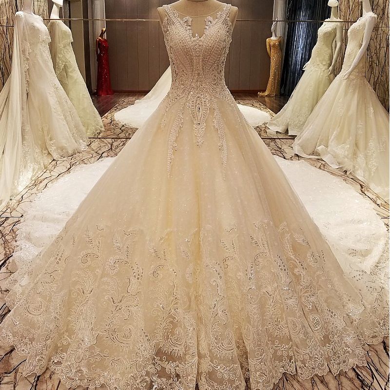 Sexy Weddings Dress 2019 See Through Back Sleeveless Ball Gown