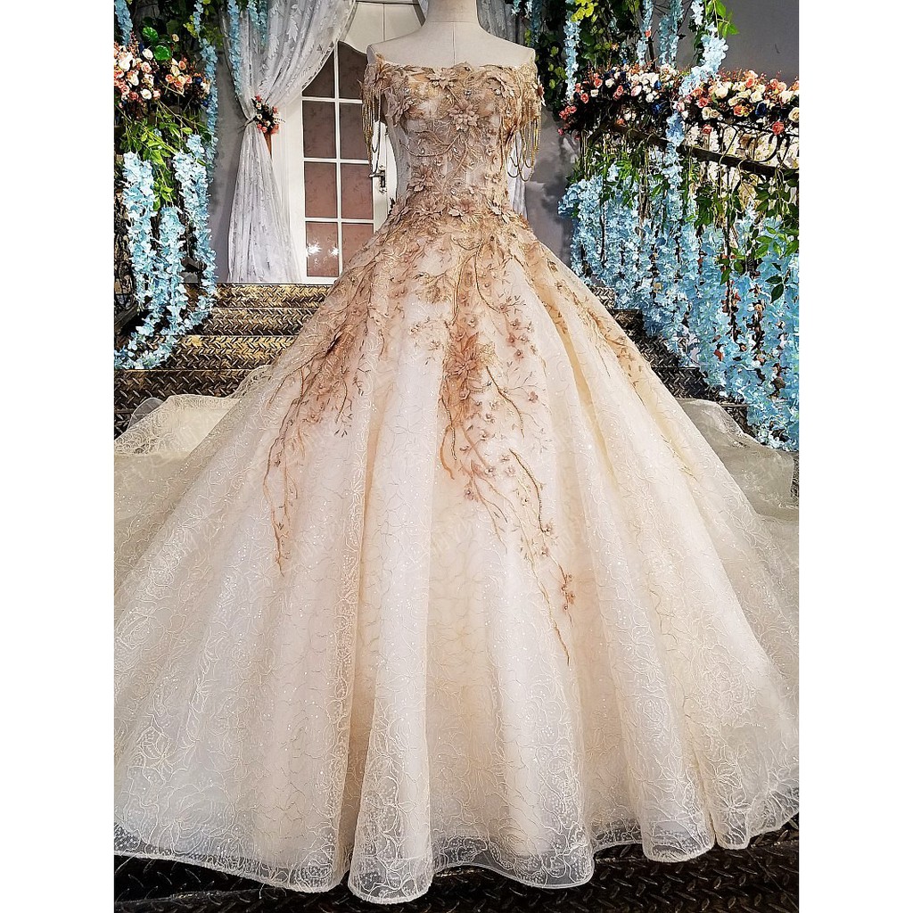 1707014 Cream Emas Ekor Gaun Pengantin Baju Pengantin Wedding Gown