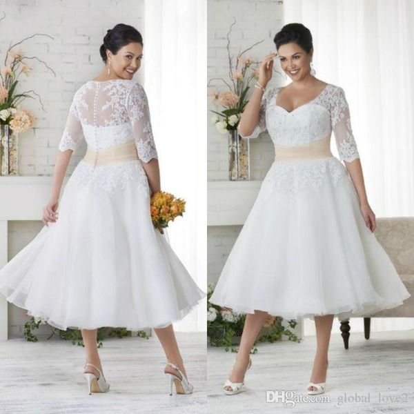New Plus Size Wedding Dresses With Sleeves A Line V Neck Ball