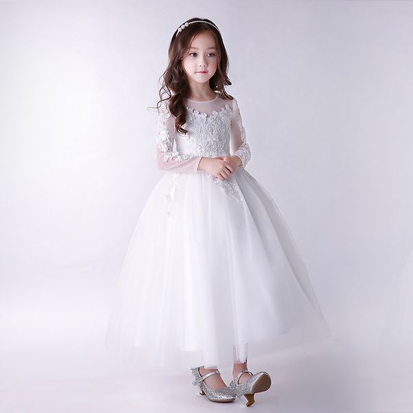 2019 Ball Gown Flower Girls Dresses For Weddings Sheer Neck Long