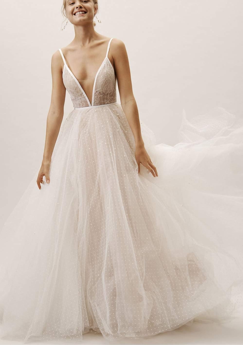 Amoa 2019 Boho Spaghetti Strap V Neck Tulle A Line Wedding Dresses
