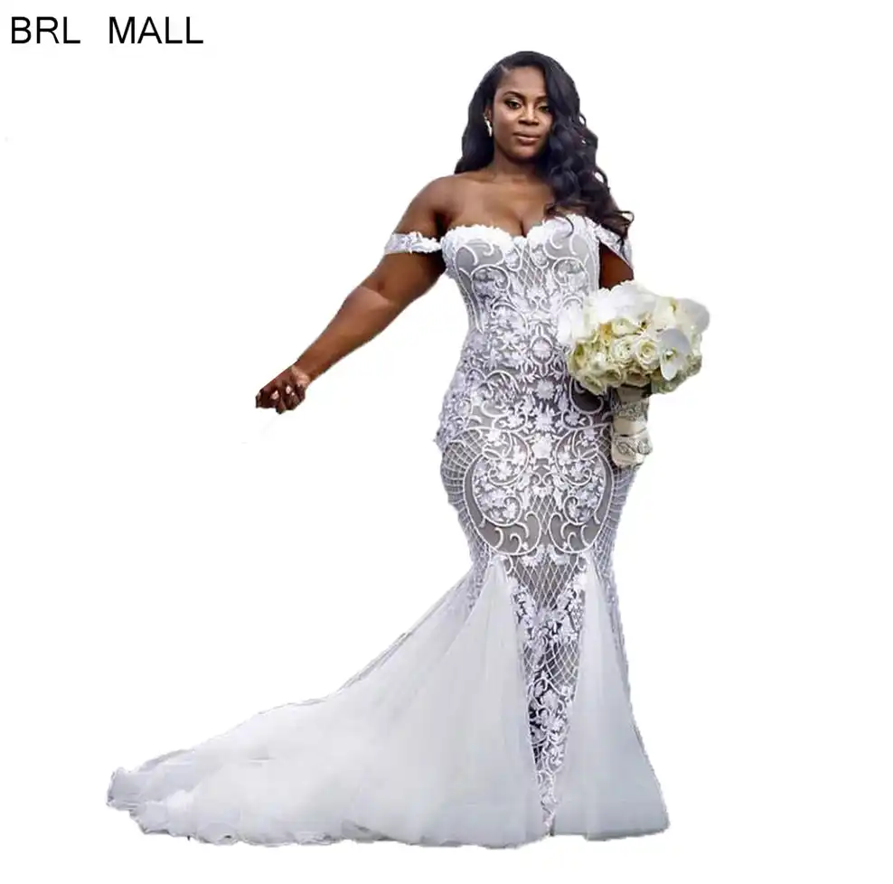 African 2020 Sexy Mermaid Wedding Dresses Lace Applique Trumpet
