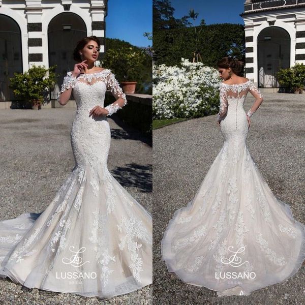 Mermaid Lace Applique Wedding Dresses With Long Sleeve 2020 Scoop