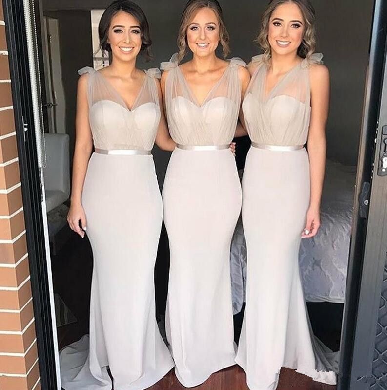 2020 Mermaid Bridesmaid Dresses V Neck Sweep Train With Bowknot