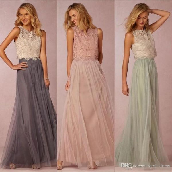 2019 Vintage Two Pieces Bridesmaid Dresses Floor Length Evening