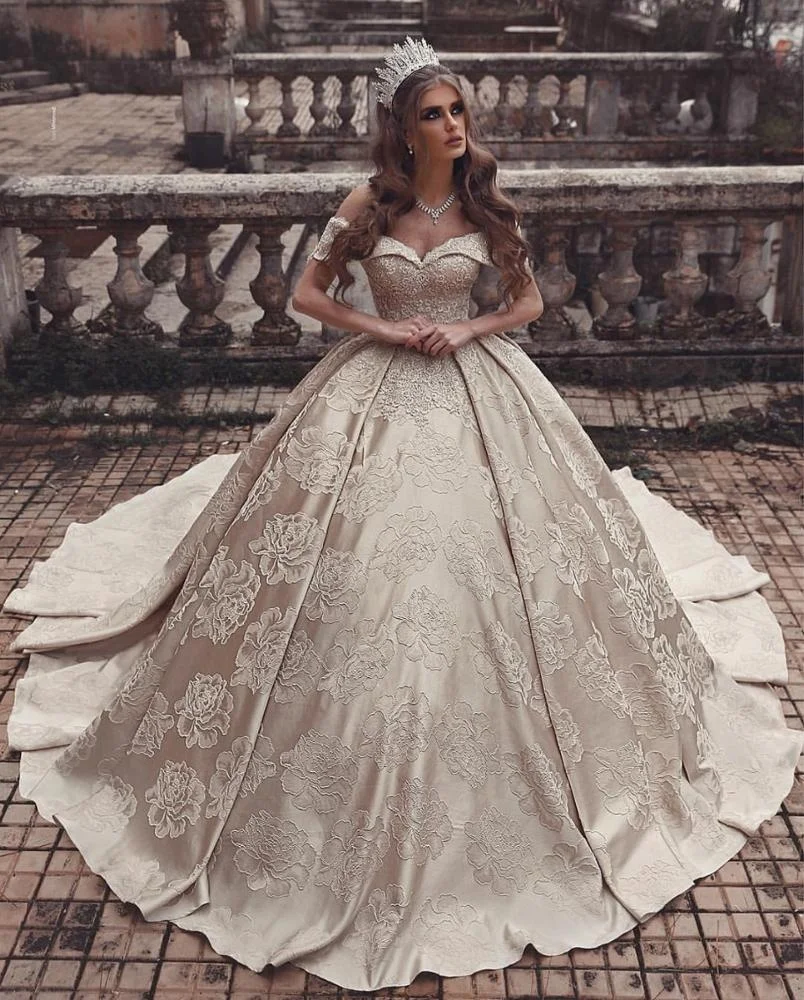 Luxury Gorgeous Gold Wedding Dresses 2019 Ball Gown Off The