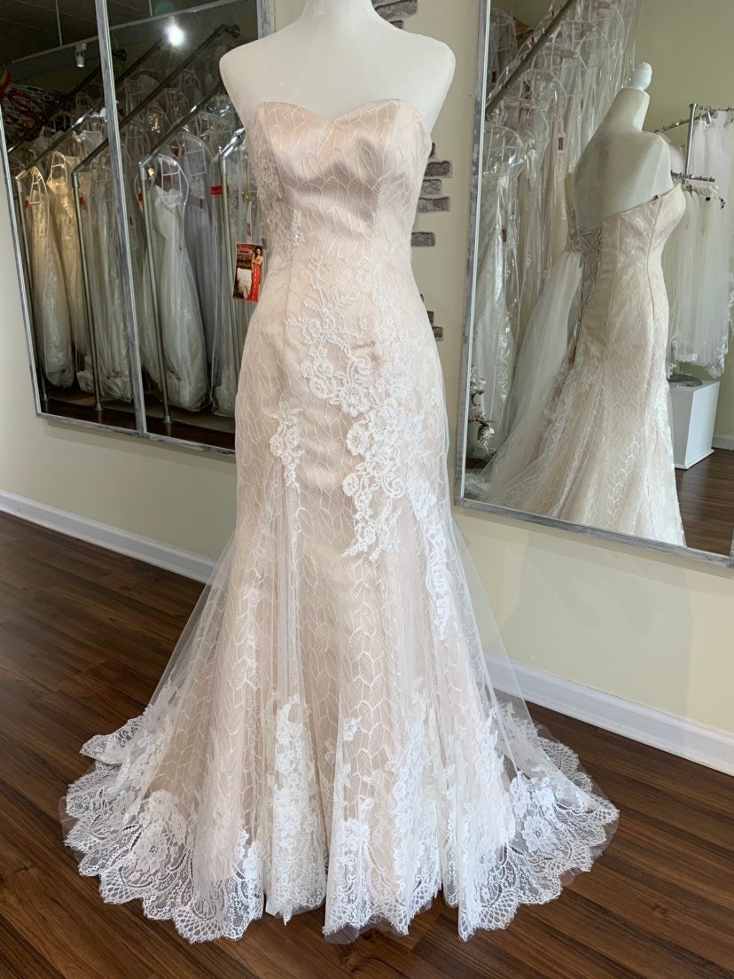 Mermaid Nude Champagne Wedding Dress With Lace Corset Bridal Etsy