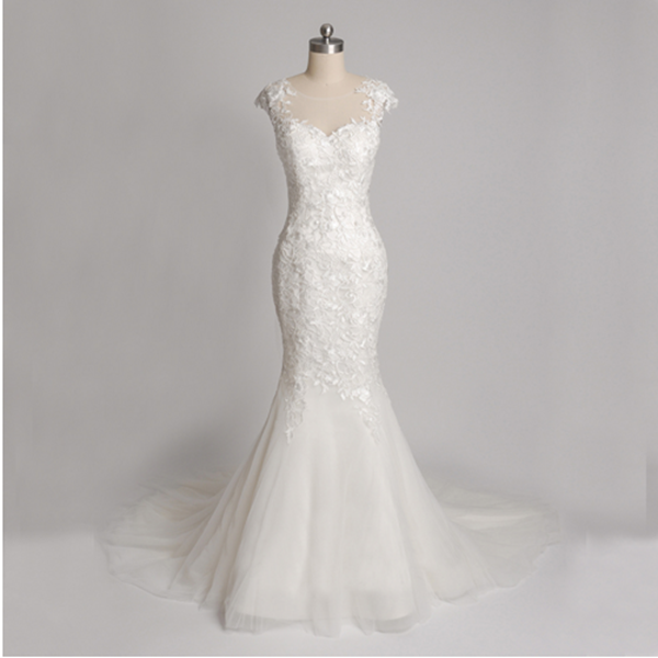 Capped Half Sleeve Lace Wedding Gowns Mermaid Sweep Train Simple
