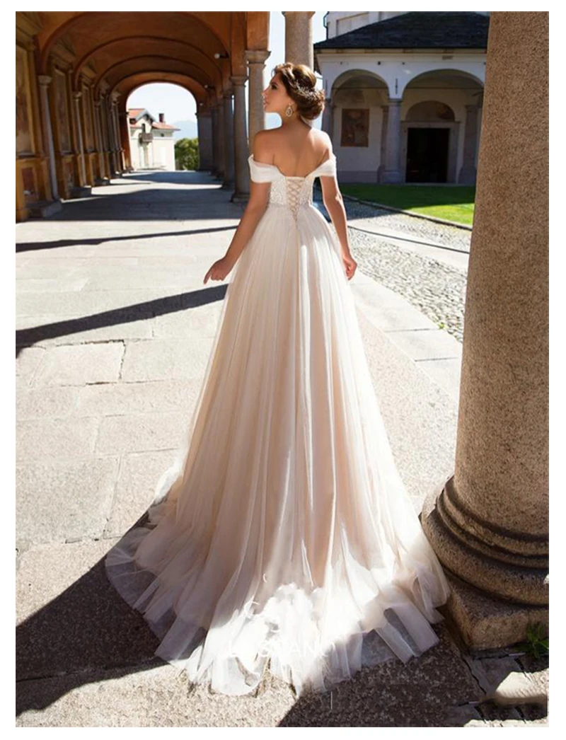 Off shoulder fairy wedding gown. It appears to be an off the shoulder gown at first glance but this is actually a wedding dress with an illusion neckline designed to give that off the shoulder look with extra invisible security. Off the shoulder off shoulder dress maxi dress wedding guest fluffy tulle tulle dress dress for women dress with corset floor length dress formal gown formal dress off shoulder dress size xs description features maxi length corset bodice fully lined sheer long sleeves higher that natural waist dress fits perfectly if you need size. Find off the shoulder wedding dresses in lace more in all sizes at davids bridal today.