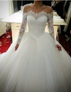 Off Shoulder Long Sleeve Lace Tulle Ball Gown Wedding Dresses