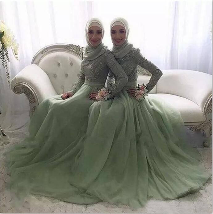 Elegant 2019 Muslim Bridesmaid Dresses Modest Jewel Neck Long