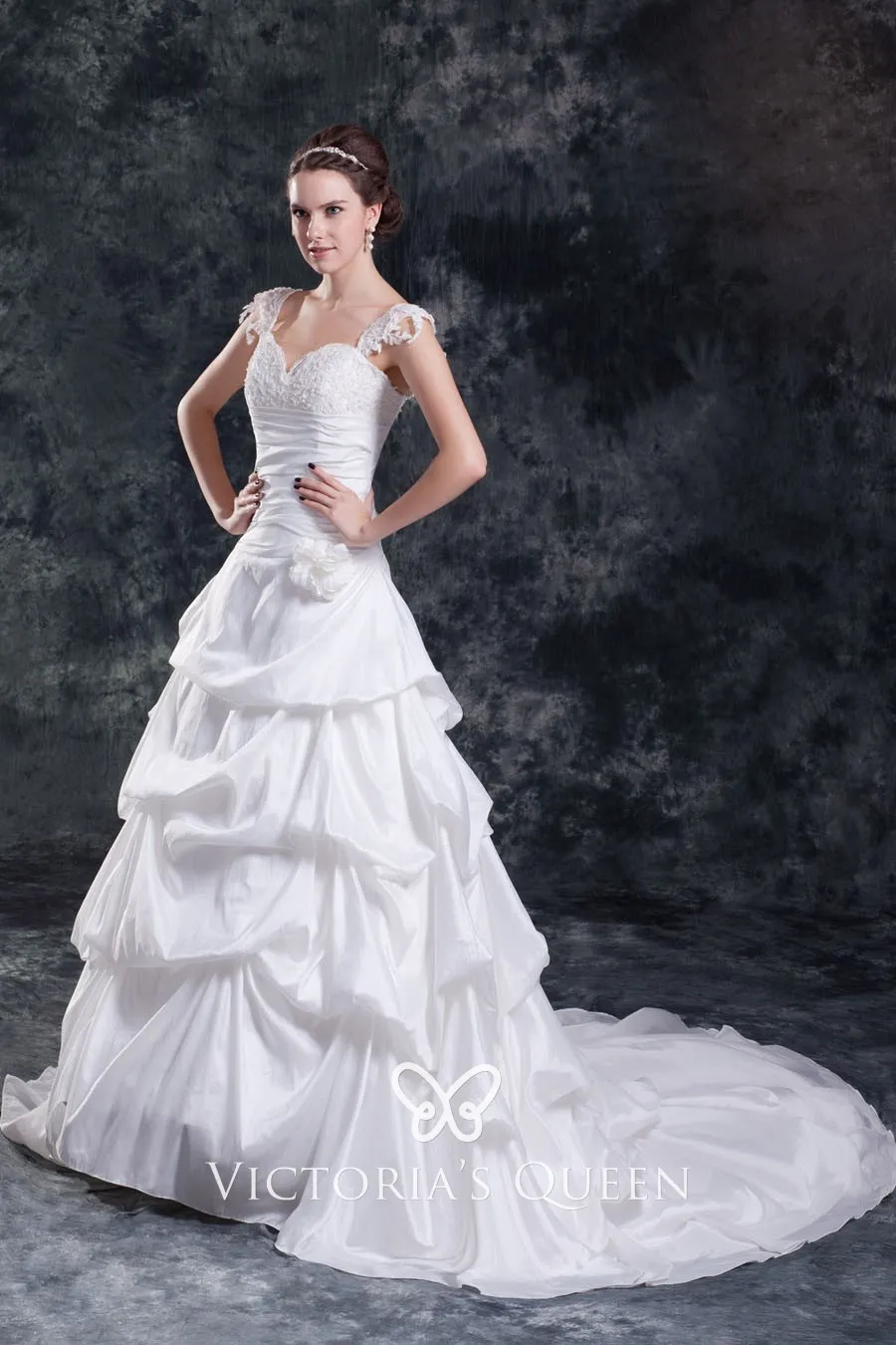 Retro White Lace And Satin Pick Up Wedding Ball Gown Vq