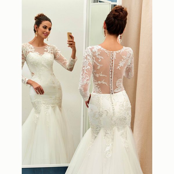 Classice Mermaid Wedding Dresses Long Sleeves Bridal Gown Sexy