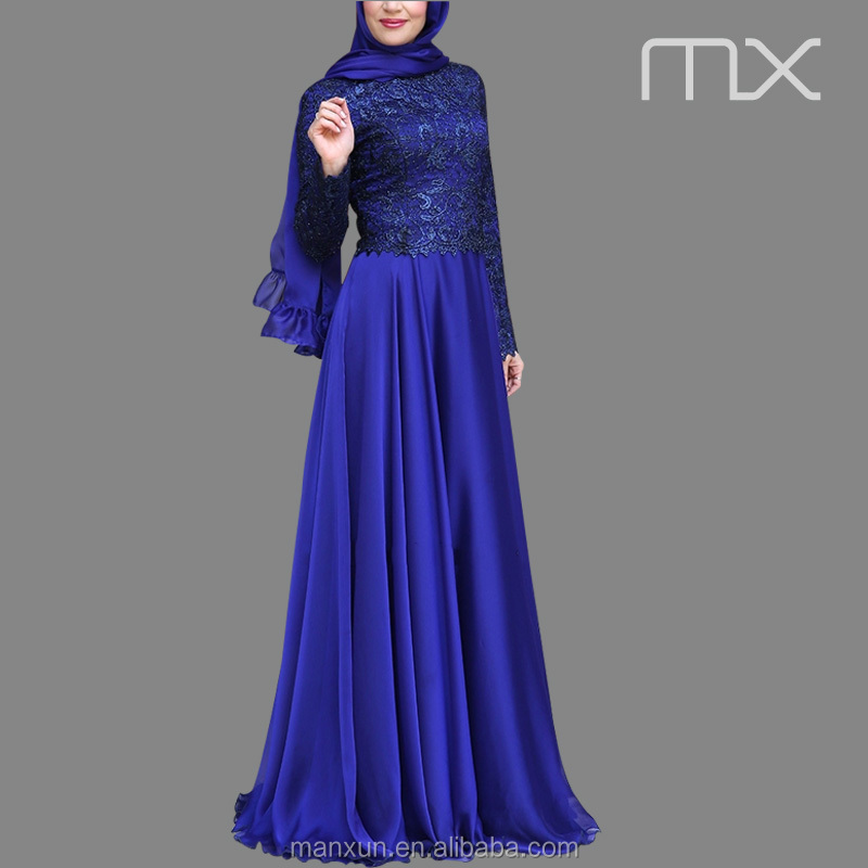 Royal Blue Colour Dress New Fashion Chiffon Maxi Dresses With Lace